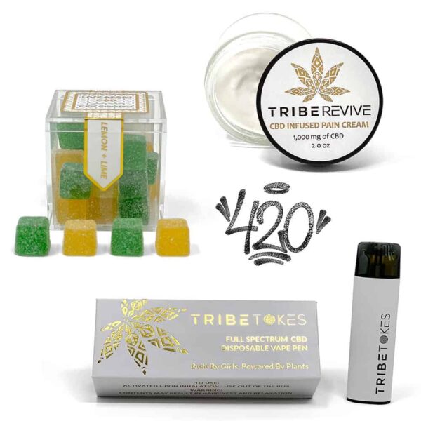 CELEBRATE 420 right this year with our special gift basket! This 3-item set includes a CBD all-in-one vape pen , Live Resin CBD Gummies and a CBD Pain Relief Cream. Purchase them together to save $30 (20% off list prices).