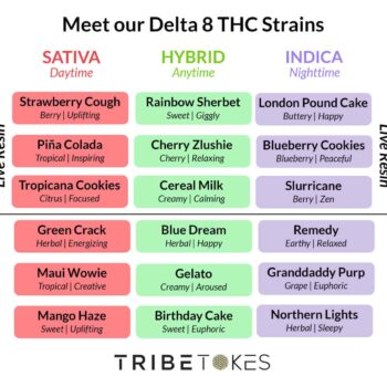 Nine of the 18 strains are also available in live resin for a more flavorful, full-spectrum experience. Lab reports at tribetokes.com/certificates-of-analysis.