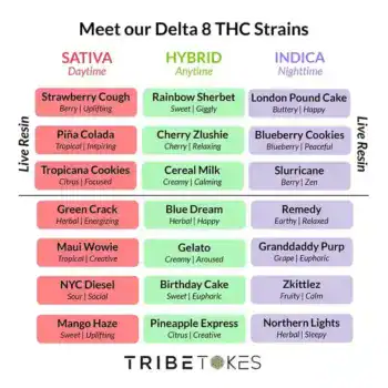 Unlike most Delta 8 THC vapes, TribeTokes’ smooth, potent and delicious oil is full spectrum – meaning it also contains other cannabinoids from the plant such as CBD, CBG and CBN for additional therapeutic benefits. Delta 8 does have mild psychoactive effects, so it is not suitable for customers under 21.