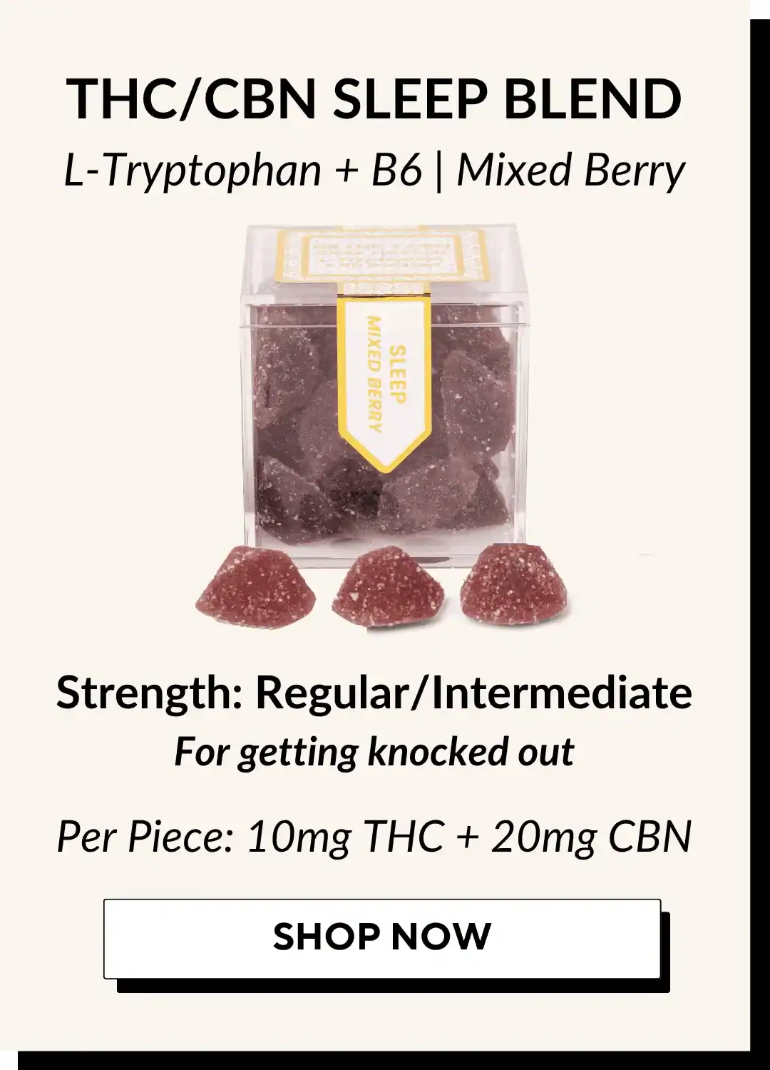 All Gummies: Organic Tapioca Syrup, Organic Cane Sugar, Water, Pectin; Less than 2% of: Natural Flavors, Natural Color, Hemp and Herbal Extracts, Sunflower Oil, Citric Acid, Sodium Citrate, Ascorbic Acid