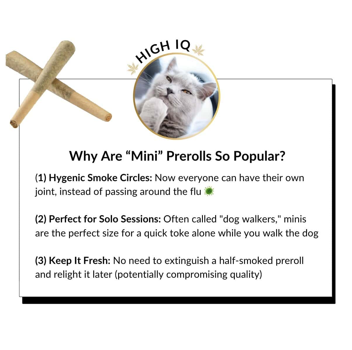 Why Our Prerolls Hit Different: Each preroll is packed with the same premium indoor flower we sell separately—high in cannabinoids and terpenes for full-spectrum effects. The difference? Zero effort required.